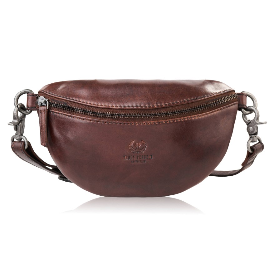 Saszetka damska skórzana nerka crossbody do ręki brązowa Paolo Peruzzi SL-05-BR