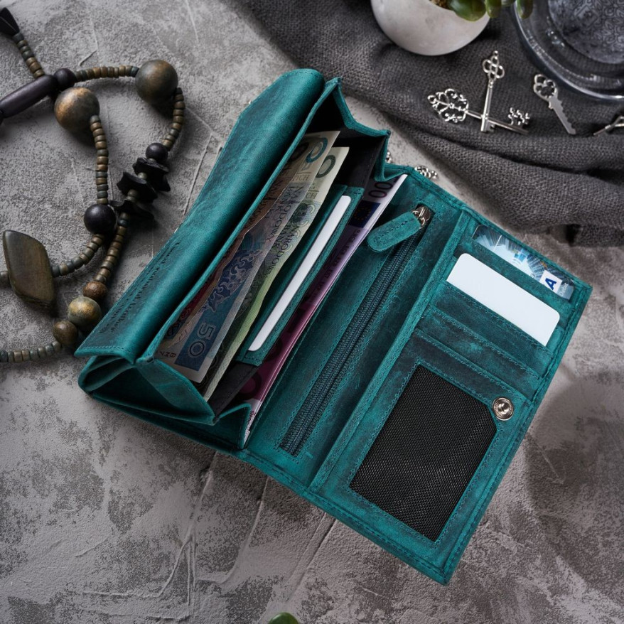 Ponadto specyficzną cechą tej skóry jest jej pastelowe barwienie, które nadaje jej specyficznego i niepowtarzalnego, postarzanego stylu. Co ważne, przy użytkowaniu materiału na jego powierzchni będą pojawiać się charakterystyczne zarysowania, wzmacniające efekt old-look – wraz z biegiem czasu damskie portfele vintage patynują się i nabierają indywidualnego charakteru.