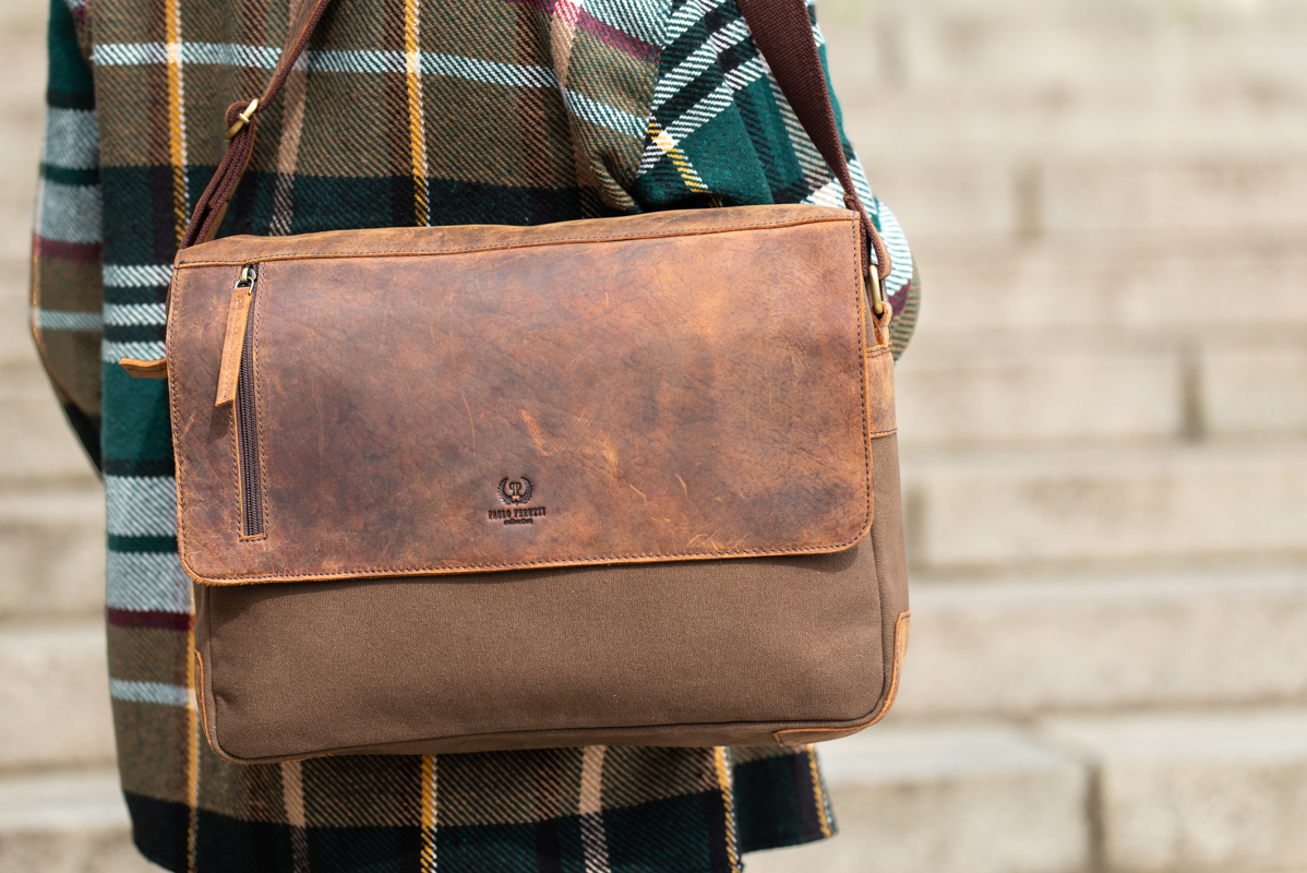 W Paolo Peruzzi, podczas tworzenia modeli do nowych kolekcji, zawsze mamy na względzie potrzeby mężczyzny. Nasz bestsellerowy model T-20 został wykonany z myślą o tych, którzy na co dzień potrzebują pojemnej i pakownej, wygodnej w noszeniu torby na ramię. Z powodzeniem mieści format A4, co czyni go akcesorium odpowiednim do pracy lub do szkoły. Wnętrze zapinane na suwak posiada kieszeń dedykowaną na telefon i wiele innych przegródek, w których z łatwością uporządkujesz drobiazgi. Jeśli zależy Ci na wygodzie i komforcie noszenia torby nawet przy dużych obciążeniach, ten model został wyposażony w regulowany pasek, który pozwoli dostosować długość do wzrostu. A materiał? Połączenie skóry naturalnej hunter i mocnego canvasu świetnie sprawdza się na co dzień. Oba surowce cechują się odpornością na przetarcia, dzięki czemu torba jest akcesorium na lata. Model T-20 to torba chętnie wybierana przez mężczyzn w każdym wieku, szczególnie miłośników stylu vintage.