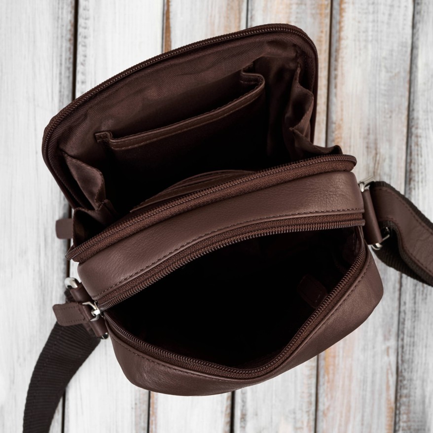 Choć AY‑27 jest niewielka, jej wnętrze zostało zaprojektowane tak, aby maksymalnie wykorzystać przestrzeń. To saszetka męska na ramię, która mieści wszystko, co najważniejsze – bez efektu „wypchania” czy nieestetycznego odkształcania.