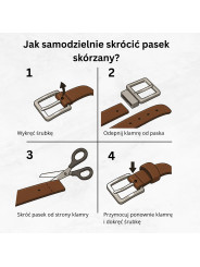 ✓ Zawsze tnij pasek od strony klamry, nigdy od końcówki z dziurkami lub ząbkami.
