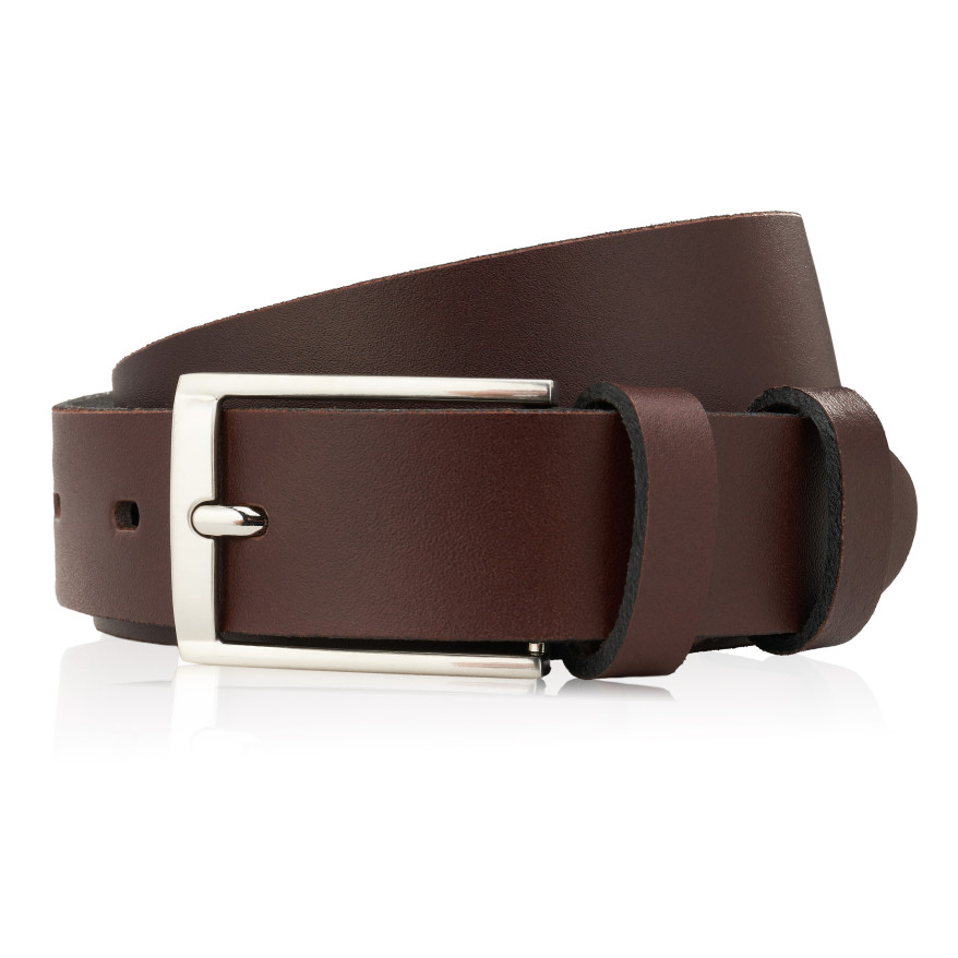 Pasek męski 100 cm skórzany brązowy klasyczny ze srebrną klamrą PG-03-BRS-100