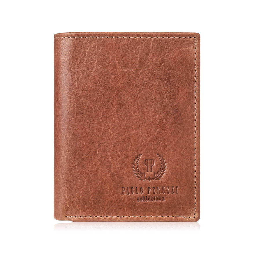 Portfel męski skórzany mały koniakowy klasyczny Paolo Peruzzi AY-09-CG