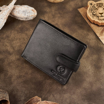 Portfel męski został wykonany z wysoko jakościowej skóry naturalnej. Wewnątrz portfela znajdują się trzy przegrody na karty kredytowe oraz dwa schowki na prywatne zapiski lub paragony. Kieszeń na bilon zapinana jest na zatrzask. Model T-78 posiada dwie przegrody na banknoty. Na froncie umieszczone jest wyciągane etui w, którym znajdują się trzy miejsca na karty i wizytówki oraz transparentna przegroda na legitymację lub zdjęcia bliskich Ci osób. W prezentowanym modelu umieściliśmy ochronną warstwę RFID, która skutecznie blokuję przesył fal radiowych.