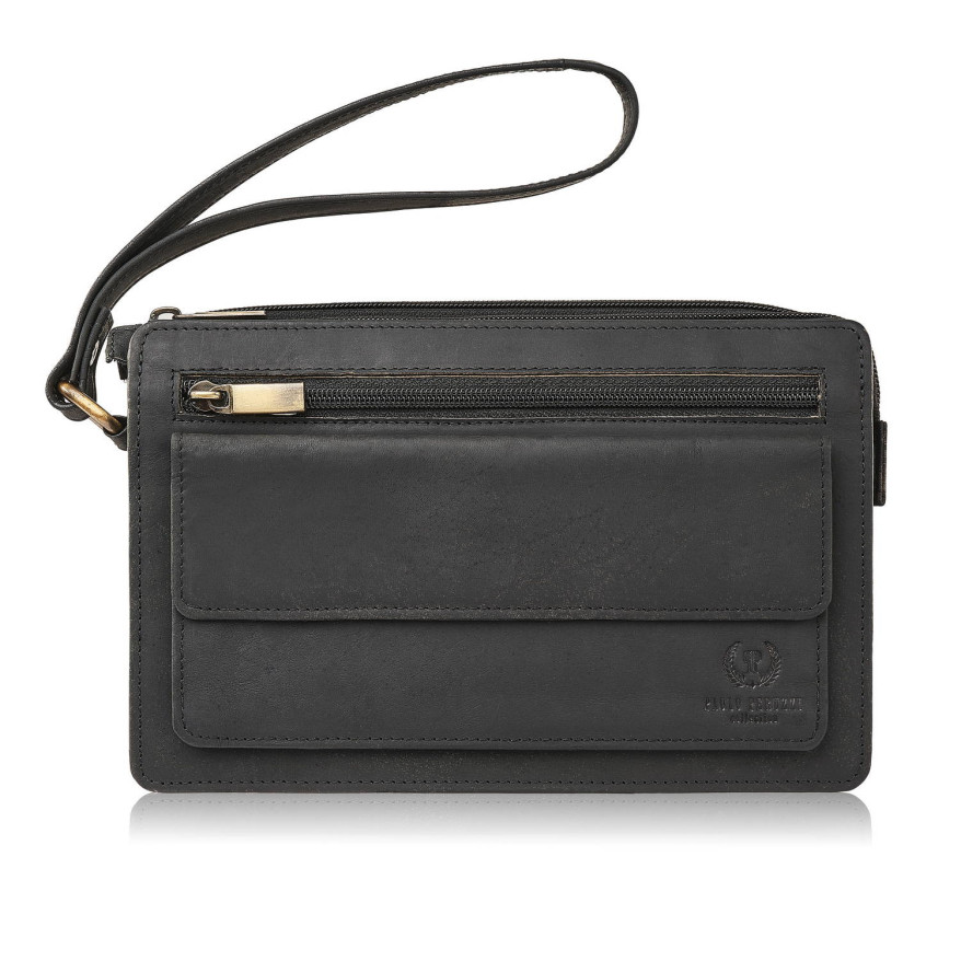 Saszetka męska skórzana z organizerem czarna vintage do ręki T-26-HBL