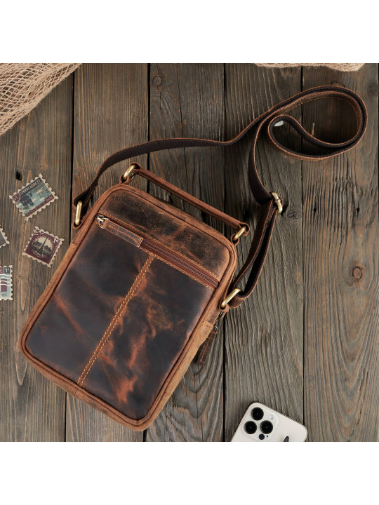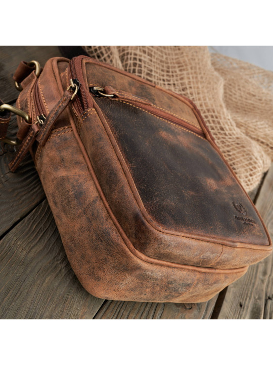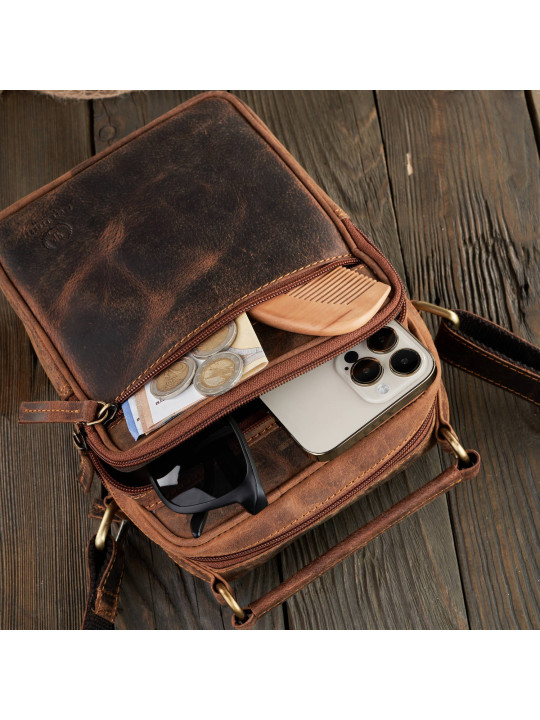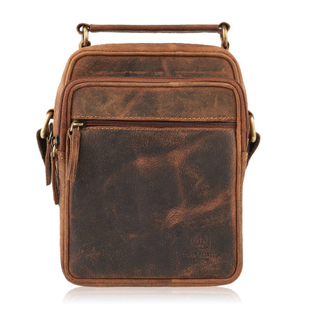 Saszetka męska T-22-HBR została uszyta z wytrzymałej skóry naturalnej hunter w kolorze brązowym, o podwyższonej odporności na uszkodzenia. Ten model, dzięki zastosowaniu materiału stylizowanego na postarzany, zyskał niepowtarzalny wygląd produktu vintage. Jak wiadomo, to akcesorium służyć będzie mężczyźnie na co dzień, dlatego ważnym było stworzenie solidnego dodatku galanteryjnego, który nie zniszczy się po kilku użyciach. Przy odpowiedniej impregnacji torba z pewnością posłuży przez niejeden sezon! Niepozornej wielkości saszetka zaskakuje także ilością miejsca do przechowywania. Pakowna komora główna pomieści wszystkie niezbędne przedmioty, które mężczyzna ma przy sobie na co dzień. W frontowych kieszeniach warto schować najczęściej wyciągane drobiazgi, takie jak klucze do samochodu czy żel antybakteryjny, a w tylnej kieszeni nieco bardziej wartościowe - telefon czy portfel. Dodatkowym atutem jest pasek skórzany z regulacją, dzięki któremu wygodnie zarzucisz saszetkę na ramię. Jeśli preferujesz noszenie jej w dłoni, w tym celu niezbędny okaże się uchwyt ze skóry naturalnej.