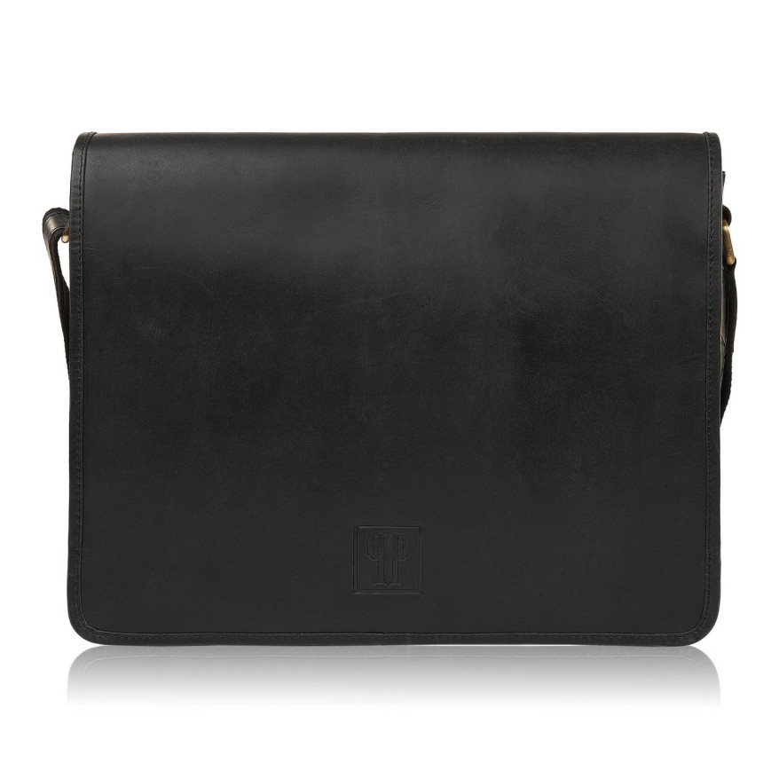 Czarna torba męska skórzana na ramię do pracy do szkoły pojemna duża T-06-BL