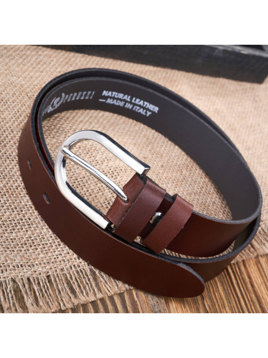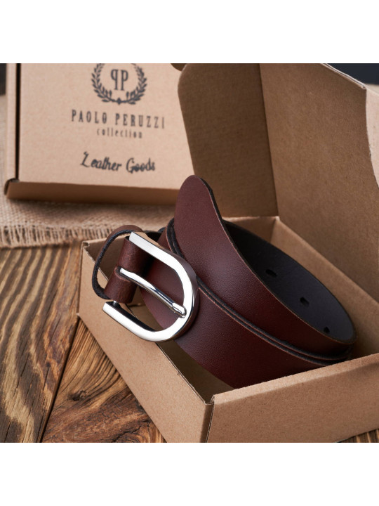 Pasek damski 110 cm skórzany brązowy ze srebrną klamrą PG-01-BRS-110