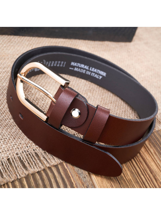 Pasek damski 90 cm skórzany brązowy ze złotą klamrą PG-01-BRZ-90