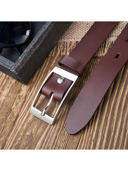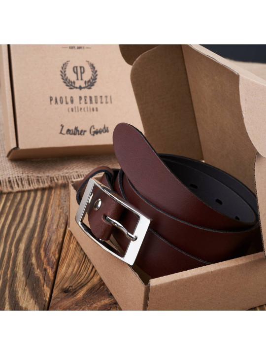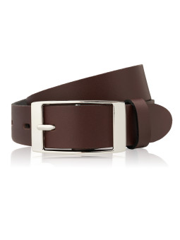 Pasek damski 110 cm skórzany brązowy ze srebrną klasyczną klamrą PG-02-BRS-110