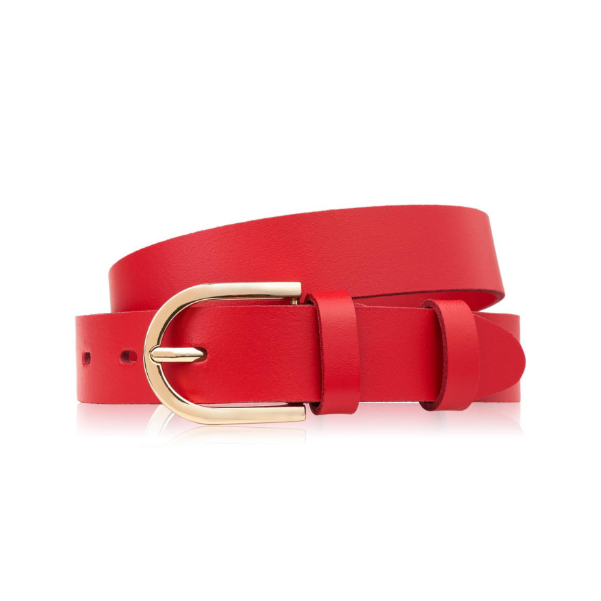 Pasek damski 120 cm skórzany czerwony ze złotą klamrą PG-01-RD-120