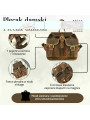 Plecak damski jest alternatywą dla torebki – musi być pakowny i pojemny, żeby znalazł swoje zastosowanie na co dzień. Pakowny model T-16 pomieści niezbędne dla kobiet rzeczy, które muszą mieć przy sobie. Z powodzeniem zmieścisz w niej notes, drugie śniadanie, małe zakupy i wiele innych przedmiotów, których nie sposób wymienić. Komora główna, w trosce o bezpieczeństwo, zawartości jest zamykana na klapę z magnesem, a także zaciskana skórzanym troczkiem. Jak wiesz, plecaki są zdrowe dla kręgosłupa – nie obciążasz jednego ramienia, jak zwykle bywa w przypadku noszenia torebek. Zadbaj o siebie z Paolo Peruzzi! W komorze głównej znajdziesz kieszonkę na telefon oraz dodatkową kieszeń na suwak - tam schowasz kobiece akcesoria. Dwie frontowe kieszenie sprawdzą się na co dzień, gdyż z pewnością będziesz przechowywała najczęściej wyciągane przedmioty, np. żel antybakteryjny.