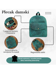 Nasze klientki pokochały skórzane plecaczki serii T-18, dlatego postanowiliśmy uzupełnić ten model o nowy, oryginalny kolor! Plecaki damskie w klimacie vintage cieszą się niesłabnącą popularnością. Czemu by nie dodać koloru naszym codziennym stylizacjom? Uniwersalny, a jednocześnie niesamowicie oryginalny kolor, uzupełni oraz ożywi zimowe, ciężkie outfity. Jednocześnie wpisze się w letnie trendy oraz okaże się nieoceniony pod względem pojemności w niejednej sytuacji. Surowiec pochodzenia naturalnego jest gwarancją wytrzymałości i bezawaryjnego użytkowania.