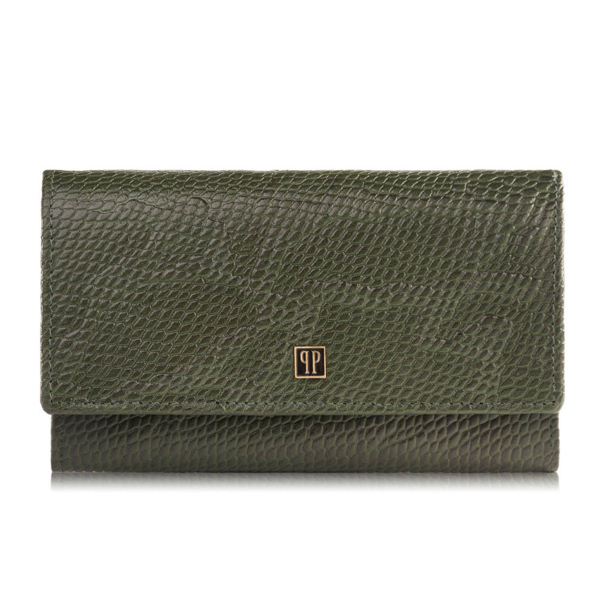 Portfel damski skórzany z imitacją wężowej skóry zielony duży z ochroną RFID T-09-GR