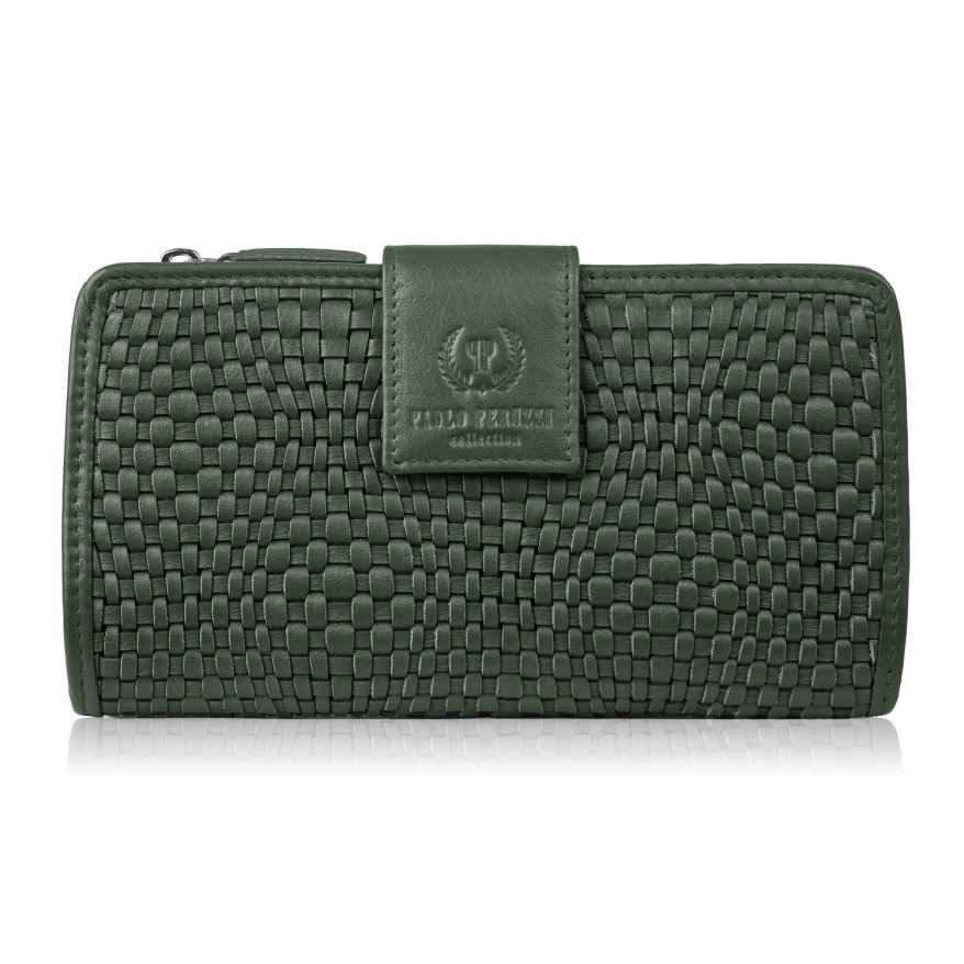 Duży portfel damski ciemna zieleń handmade z ochroną RFID Paolo Peruzzi AY-08-GB