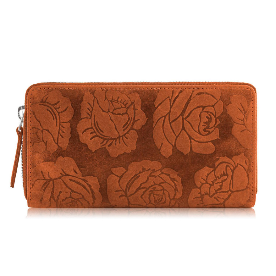Portfel damski skórzany pomarańczowy w kwiaty RFID T-115-HOR