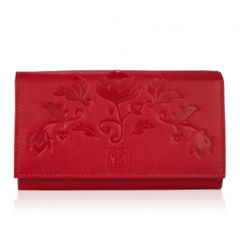 Portfel damski skórzany z kwiatowym wzorem T-45-RD etui na klucze T-51-NRD zestaw prezentowy w kolorze czerwonym ZUP-119-RD