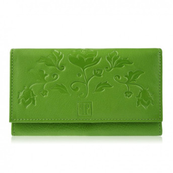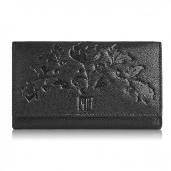 ✿ Skórzany portfel średniej wielkości zaskakuje ilością miejsca do przechowywania, bez trudu mieszcząc się w każdej torebce damskiej. Portfel został wykonany ze skóry naturalnej, na froncie posiadając gustowne, kwiatowe tłoczenie. Portfel wyposażony jest w 5 wsuwanych schowków oraz kieszeń na suwak, pomieści wszystkie niezbędne paragony i zapiski. Dodatkowo, do dyspozycji pozostaje również 7 przegród na karty kredytowe oraz jedna transparentna, na zdjęcia bliskich osób. Monety znajdą swoje miejsce w zapinanej na solidną napę kieszeni na bilon. Model T-45 został dodatkowo wzmocniony wewnętrzną membraną RFID, chroniącą przed przepływem fal radiowych.